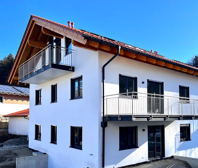 Das komfortable Mehrfamilienhaus im KfW-55-Standard wurde von uns im Jahr 2022 in der schönen Kreisstadt Traunstein realisiert.