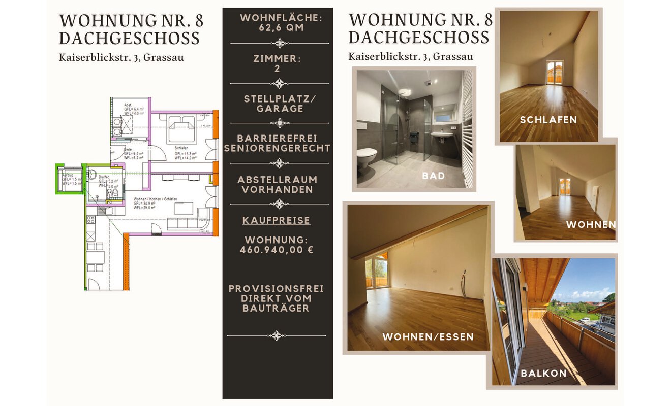 Alle Wohneinheiten wurden bereits vermietet, 4 von 8 Wohnungen stehen jedoch noch zum Kauf zur Verfügung! Für weitere Informationen nehmen Sie gerne Kontakt mit uns auf!
