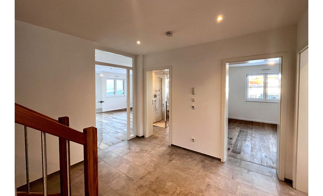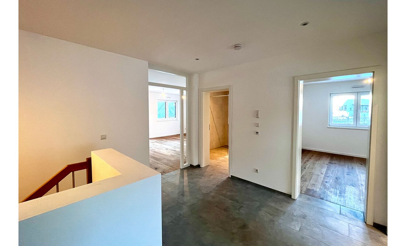 Ruhig gelegen und doch nur zehn Minuten zu Fuß vom Zentrum entfernt, finden hier insgesamt vier Familien ein Zuhause, das keine Wünsche offenlässt. Die Wohnungen im Maisonette-Stil erstrecken sich jeweils großzügig über zwei Etagen. In den lichtdurchfluteten Räumen gibt es viel Platz für alle Facetten des familiären Zusammenlebens. Große Balkone und private Garagen runden das Wohnerlebnis ab.