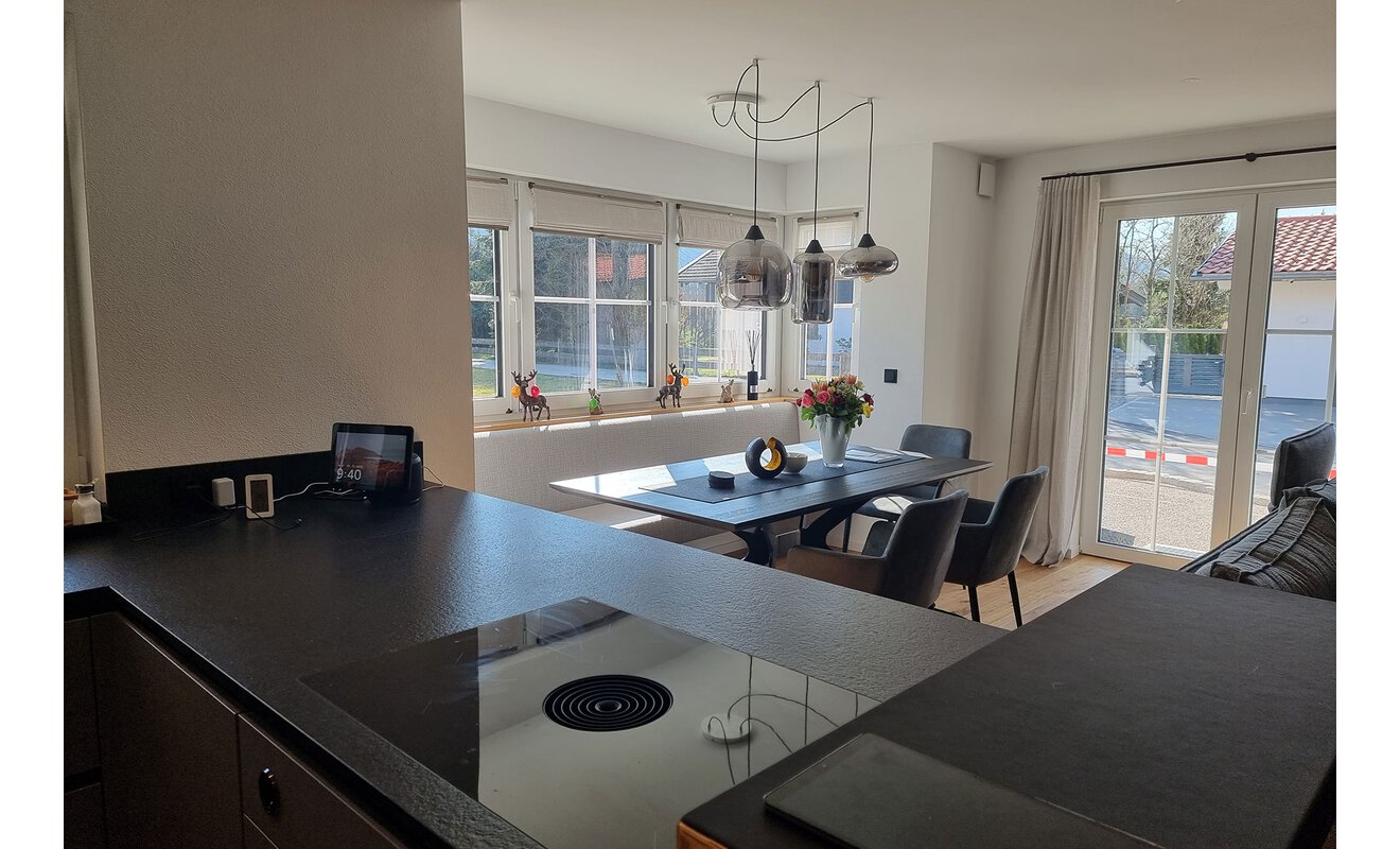 Die hervorragende Gestaltung und Raumaufteilung der Wohneinheiten geben den Bewohnern das Gefühl, nicht in einem Doppelhaus zu wohnen, sondern im eigenen exklusiven und gemütlichen Zuhause zu leben. Die hochwertige Ausstattung und ein atemberaubender Bergblick auf Hochplatte, Hochgern oder Gederer Wand bieten das pure Luxus-Wohngefühl in Alpennähe. Der idyllische Reifinger See ist nur wenige hundert Meter vom Haus entfernt.